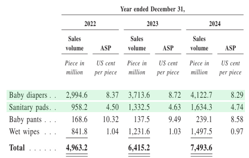 Otro dato interesante del prospecto de salida a bolsa se puede ver el crecimiento en el volumen de ventas de los últimos años. En 2022 vendieron 2.994 millones de pañales y 4.122 millones en el año 2024. Según los resultados del año 2025 el volumen fue de 5.142 millones, con un aumento interanual del 24,7%.