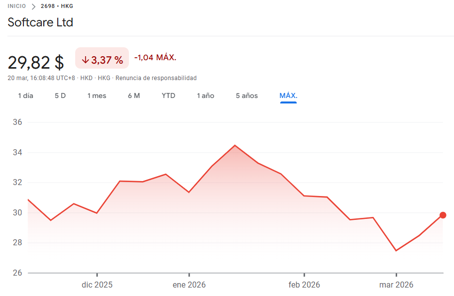 La empresa que vamos a hablar se llama Softcare. Cotiza en la bolsa de Hong Kong con el número 2698.