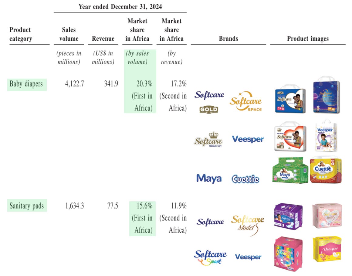 Respecto al segmento de toallitas sanitarias, la empresa dice que el creciente tamaño de la población femenina africana en el grupo de edad objetivo, junto con una mayor promoción y concienciación sobre la salud de la mujer en ciertos países y el aumento de las tasas de urbanización, ha ampliado continuamente la demanda subyacente de toallas sanitarias e impulsado el crecimiento de las ventas.