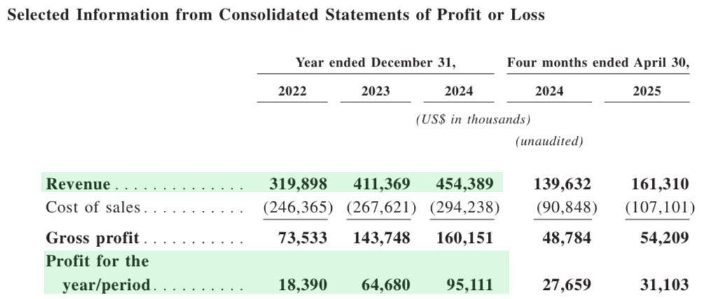 En el prospecto de salida a bolsa del año pasado, la empresa informa la evolución de los ingresos de los últimos años. Los ingresos crecieron 28% en 2023 y 10,4% en 2024. El apalancamiento operativo generó que el Beneficio neto aumente 250% en 2024 y 47% en 2024.