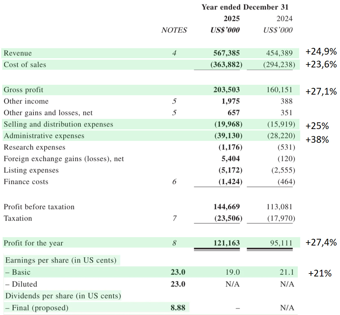 El 10 de noviembre de 2025 completó su salida a la bolsa de Hong Kong. En ese momento contaba con 9 plantas de producción con un total de 51 líneas de producción activas.